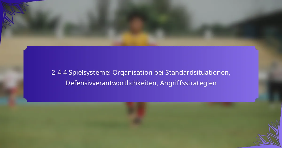 Die 2-4-4-Formation ist ein taktisches System, das in verschiedenen Mannschaftssportarten eingesetzt wird und durch zwei Verteidiger, vier Mittelfeldspieler und vier Stürmer gekennzeichnet ist. Diese Konfiguration zielt darauf ab, offensiven Druck mit defensiver Stabilität in Einklang zu bringen, sodass die Teams sich an verschiedene Spielphasen anpassen können.